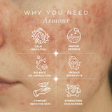 💧 Armour Serum — Infused with Niacinamide, Centella, and Hyaluronic Acid to hydrate, soothe, and protect compromised skin.